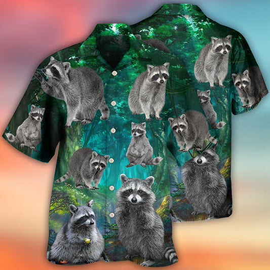Raccoon Style With Green - Hawaiian Shirt