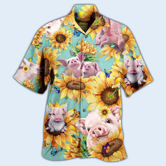 Pig Animals Amazing Pig Loves Sunflowers - Hawaiian Shirt