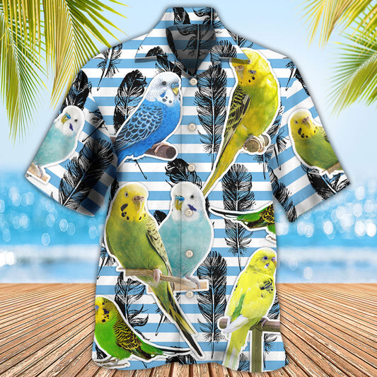 Parrot Parakeet Blue And White Stripe - Hawaiian Shirt