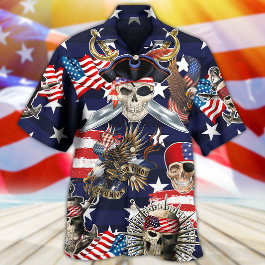 Pirate Skeleton America Independence Day - Hawaiian Shirt