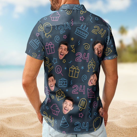 Birthday Neon Party Custom Funny Face Gift – Custom Photo Hawaiian Shirts