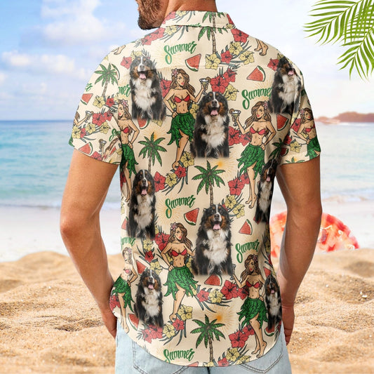 Personalized Aloha Shirt – Custom Photo With Hula Girl Tropical Pattern Hawaiian Shirt - Custom Photo Hawaiian Shirts