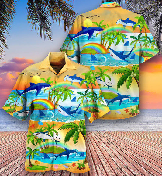 Shark Bright Rainbow And Sharks - Hawaiian Shirt