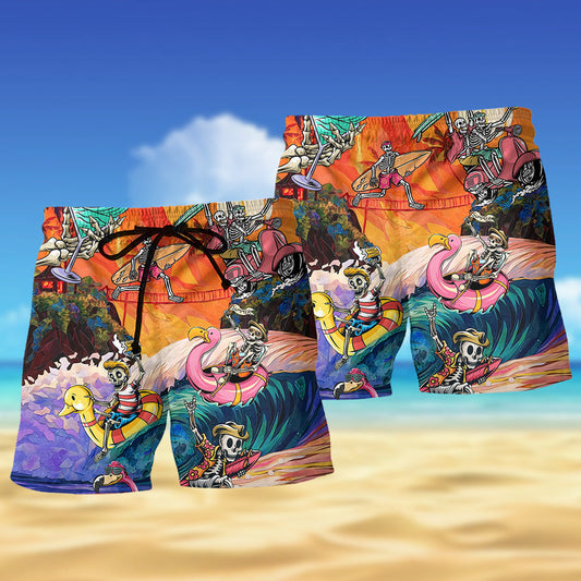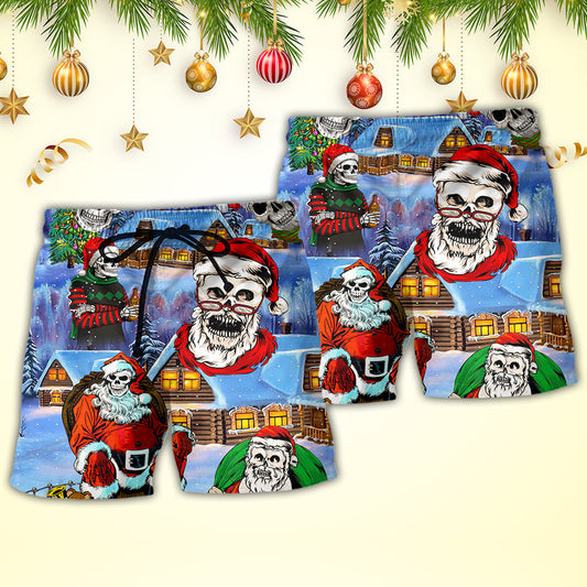 Christmas Bad Santa Skull Galaxy Art – Beach Short