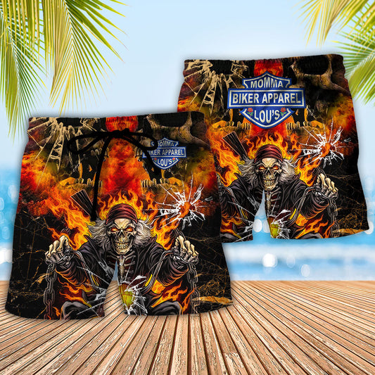 Skull Devil Challenge Graphic With Fierce Statement – Beach Short