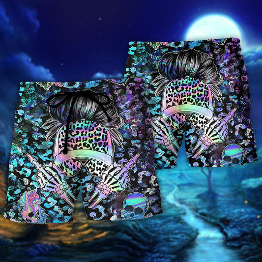 Skull Confidence Message About Being The Wrong One To Mess With – Beach Short
