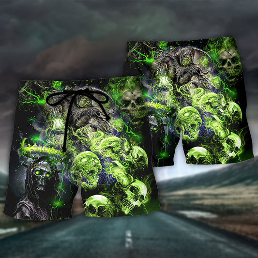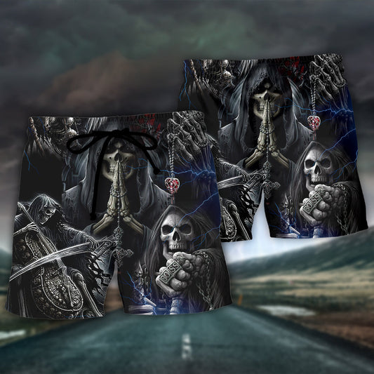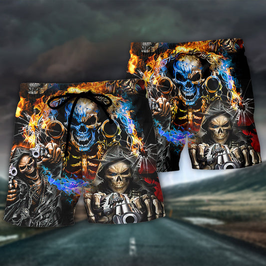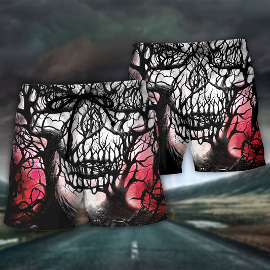 Skull Bold Humor Graphic With Dark Ride Theme – Beach Short