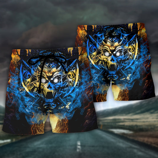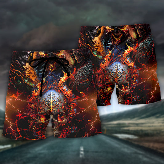Skull Flame Attitude Graphic With Bold Statement – Beach Short