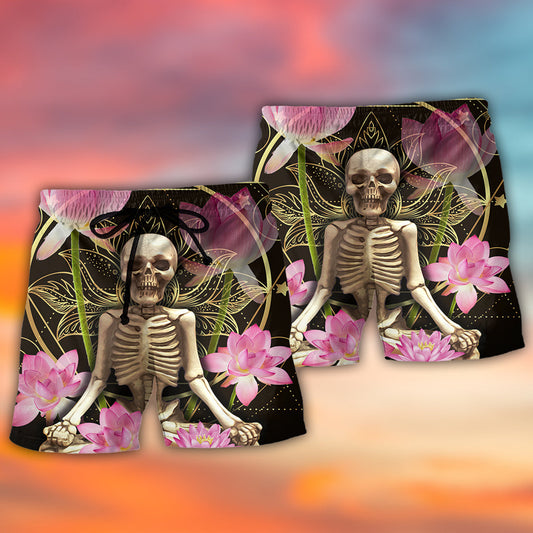 Skull Yoga Lighting Lotus Flower - Beach Short
