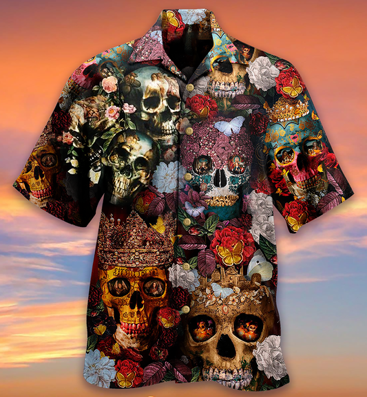 Skull Beautiful And Flowers - Hawaiian Shirt