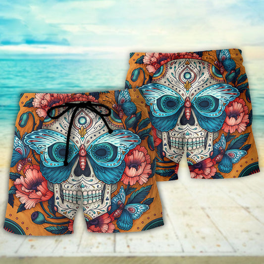 Skull And Butterfly Abstract Vintage Colorful - Beach Short