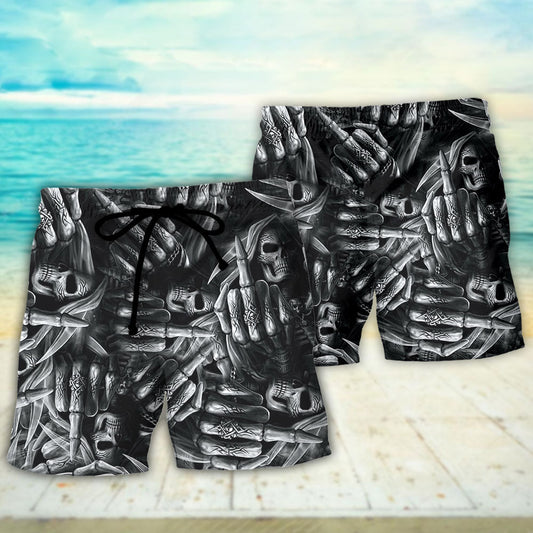 Skull With Rose Flower And Raven Gothic Style - Beach Short