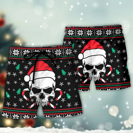Christmas Skull Santa Hat Candy Art – Beach Short