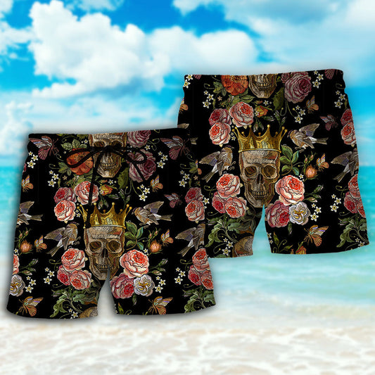 Skull And Flowers Artistic Contrast Art – Beach Short