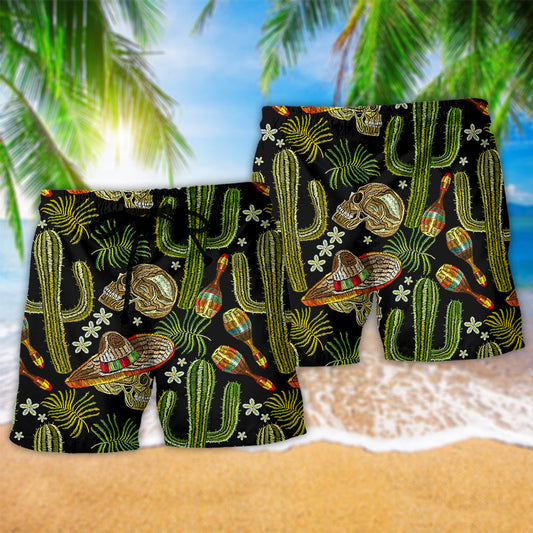 Christmas Skull Merry Xmas Holiday Art – Beach Short