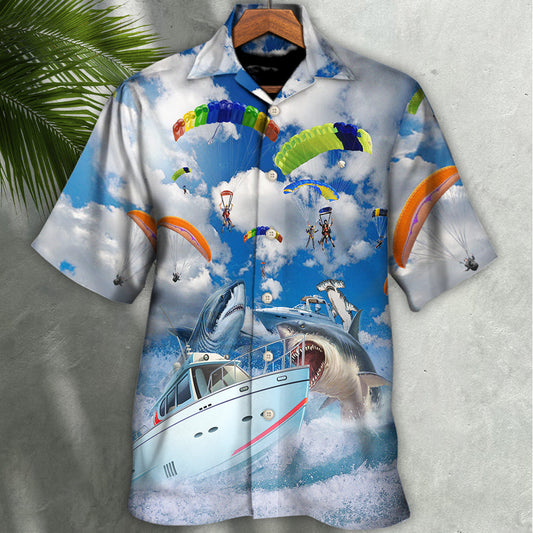 Parasailing Let's Fly Away With Shark - Hawaiian Shirt