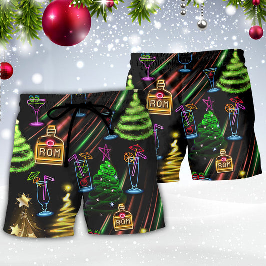 Wine Rum Christmas Neon Art Drinking - Beach Short