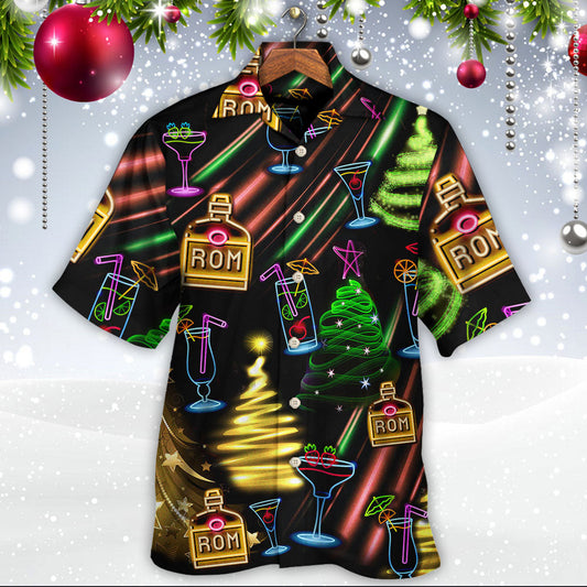Wine Rum Christmas Neon Art Drinking - Hawaiian Shirt