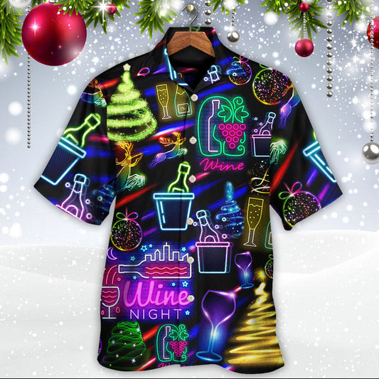 Wine Christmas Neon Art Drinking - Hawaiian Shirt